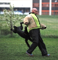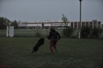 Вечером один из сыновей - Klemens тренирует свою собаку под руководством отца и пробует свои силы в качестве фигуранта на площадке. Некрупная сухая ладная сука Andra vom Sandbergland поразила в первую очередь скоростями и резкостью.