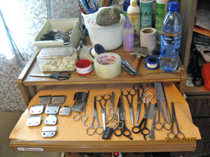 Для работы вполне достаточно 3 (трех!) ножей: Нулевой, №15, и филировочный — 3–5 мм. Есть также один "хитренький", он самый дорогой, пользуюсь я им для стрижки пяток миттелей и ушей маленьких собак.