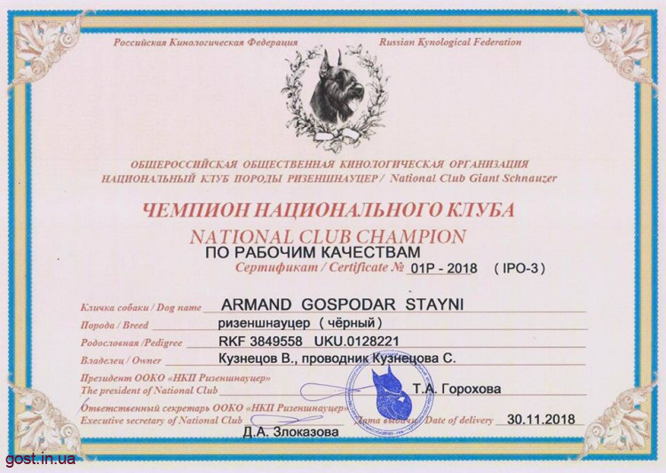 Чемпион Национального клуба по рабочим качествам (IPO-3)